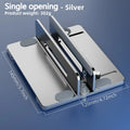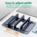 Crafted from durable aluminum alloy, this stand is sturdy, lightweight, and stylish. Its vertical slots allow multiple devices to stand upright, preventing clutter and enhancing desk aesthetics. Adjustable width ensures compatibility with devices of various sizes.