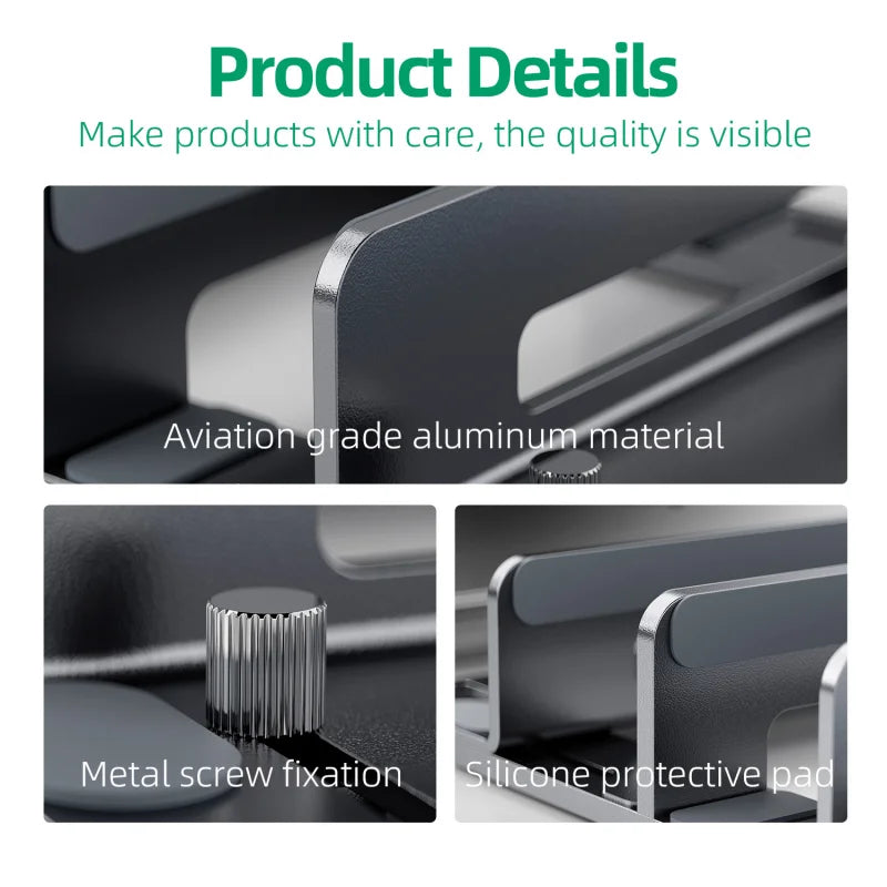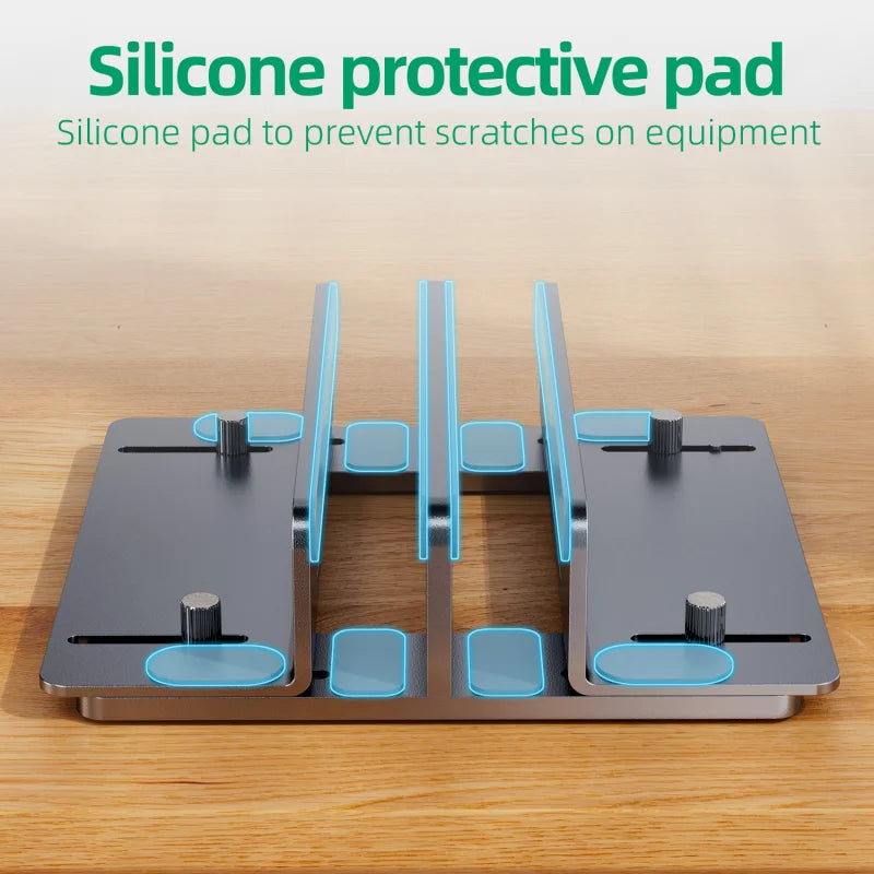3-in-1 Adjustable Vertical Laptop Stand Holder – Aluminum Alloy Desktop Dock for Laptop, Tablet & Phone