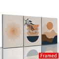 Featuring a stylish combination of Nordic geometric lines, organic leaf shapes and rich orange tones, this framed canvas set creates a cosy, trendy and artistic atmosphere in your living room, bedroom or office.