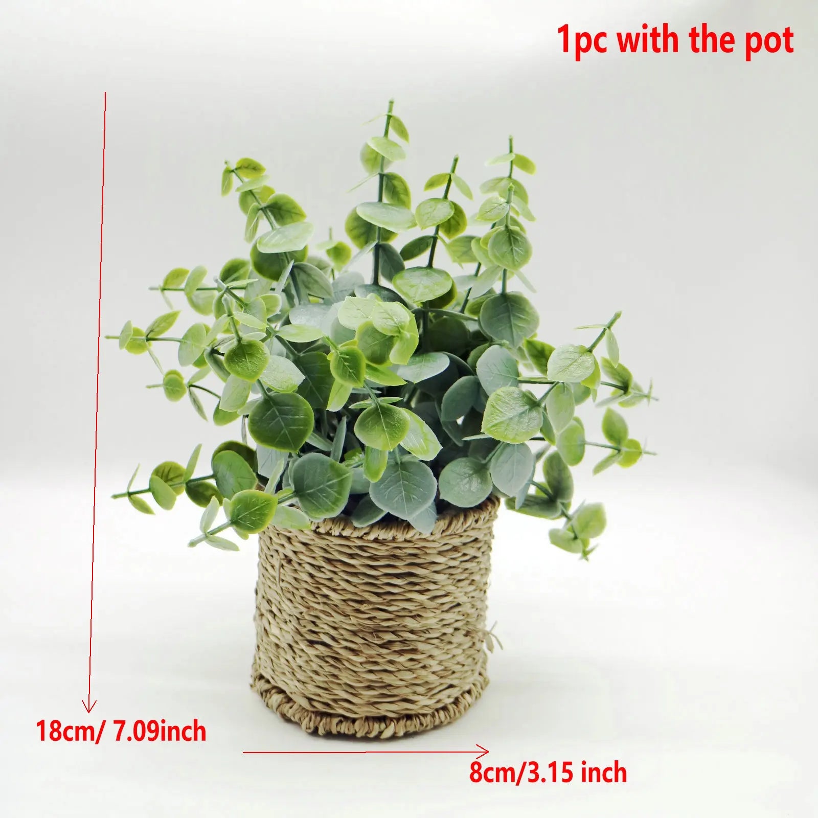 With its soft, realistic eucalyptus leaves and a handwoven-style grass pot, this decorative plant is perfect for home décor, office styling, party decoration and professional shooting props.