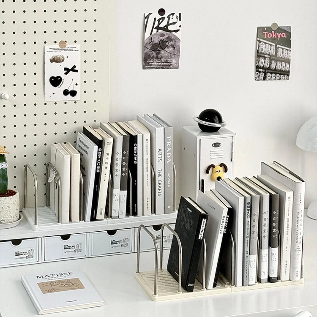 Keep your books, magazines, files, and documents neatly organized with this Desktop Bookshelf Storage Rack. Designed for home, school, or office use, this vertical divided book holder saves space while providing quick access to all your reading materials and documents.
