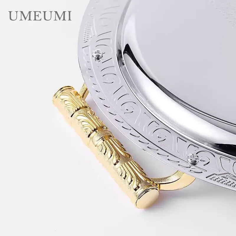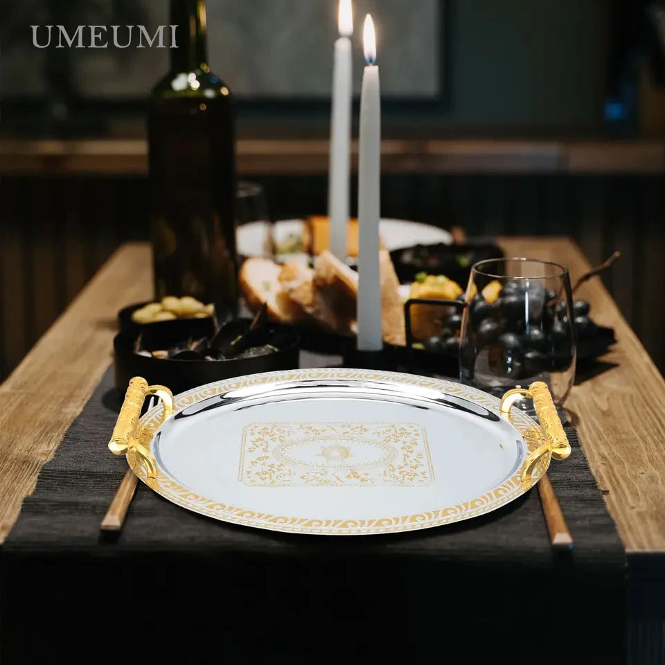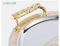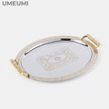 Elevate your home, café, or hospitality space with the European Style Golden Metal Decorative Tray by UMEUMI HOME. Designed for luxury, practicality, and style, this oval mirror tray with elegant handles is perfect for serving tea, coffee, wine, desserts, or even for displaying decorative items.