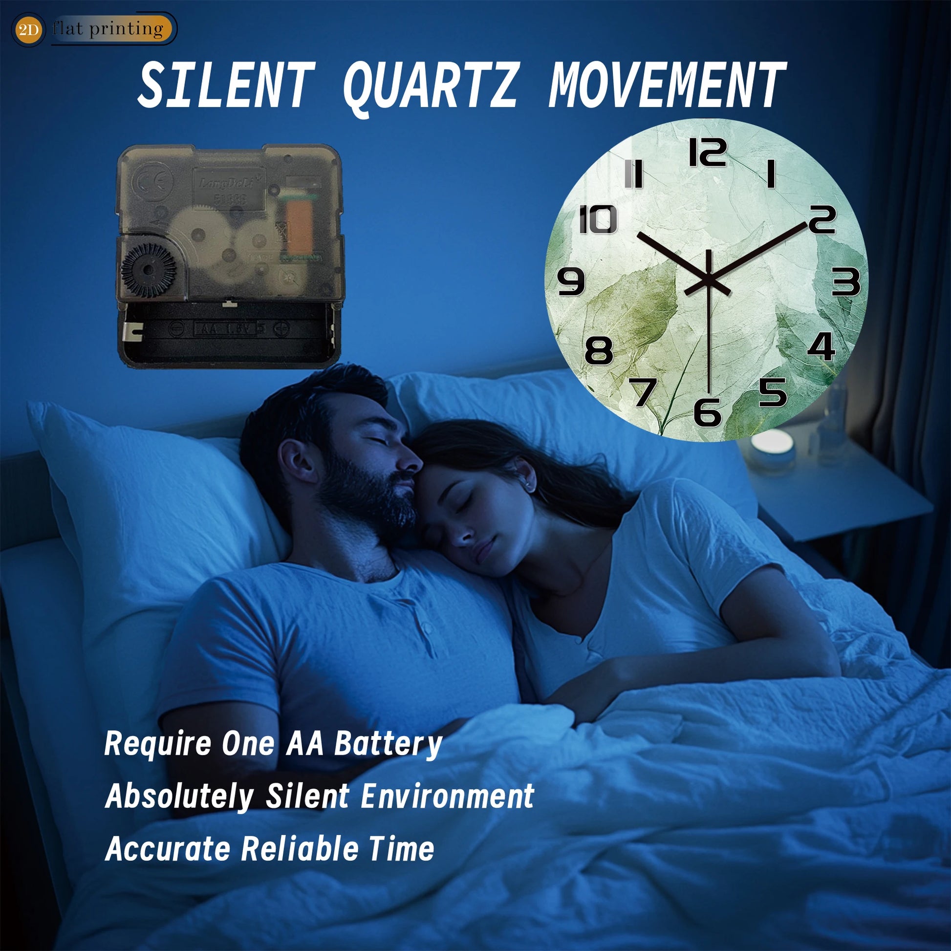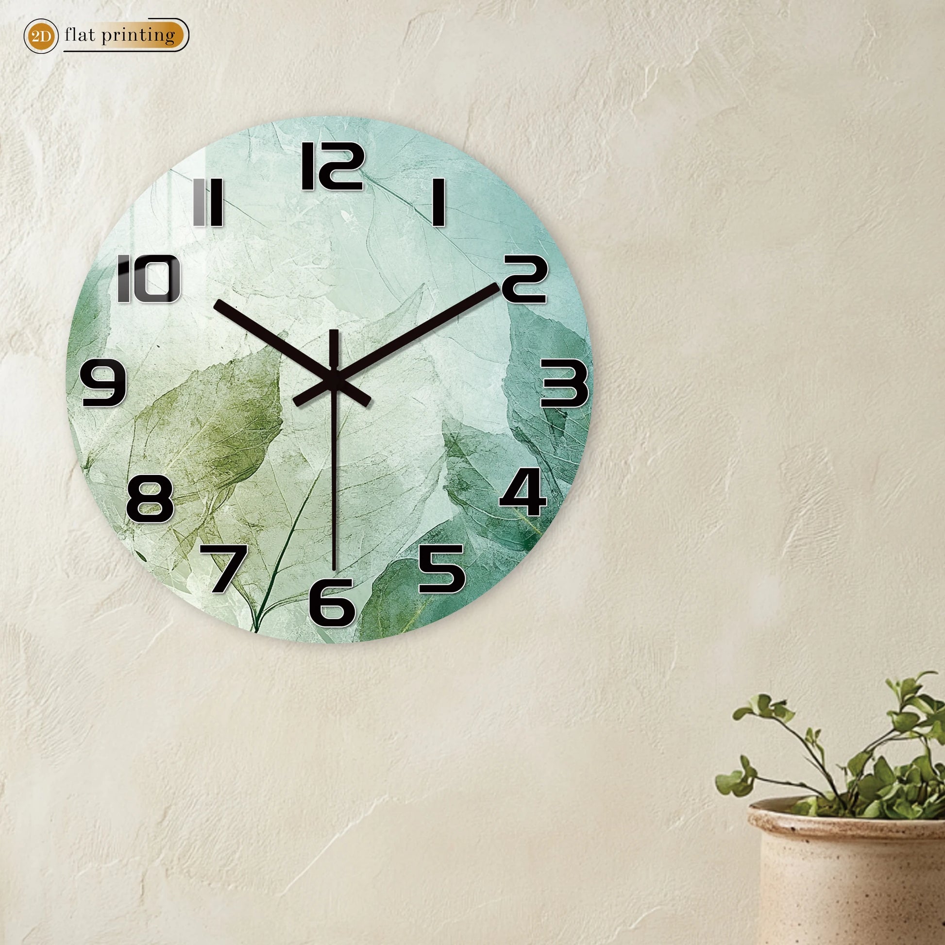 🌿 Fresh Green Leaf Print Wall Clock – Minimalist Botanical Pattern, Silent Sweeping Quartz, Kitchen & Bathroom Decorative Timepiece