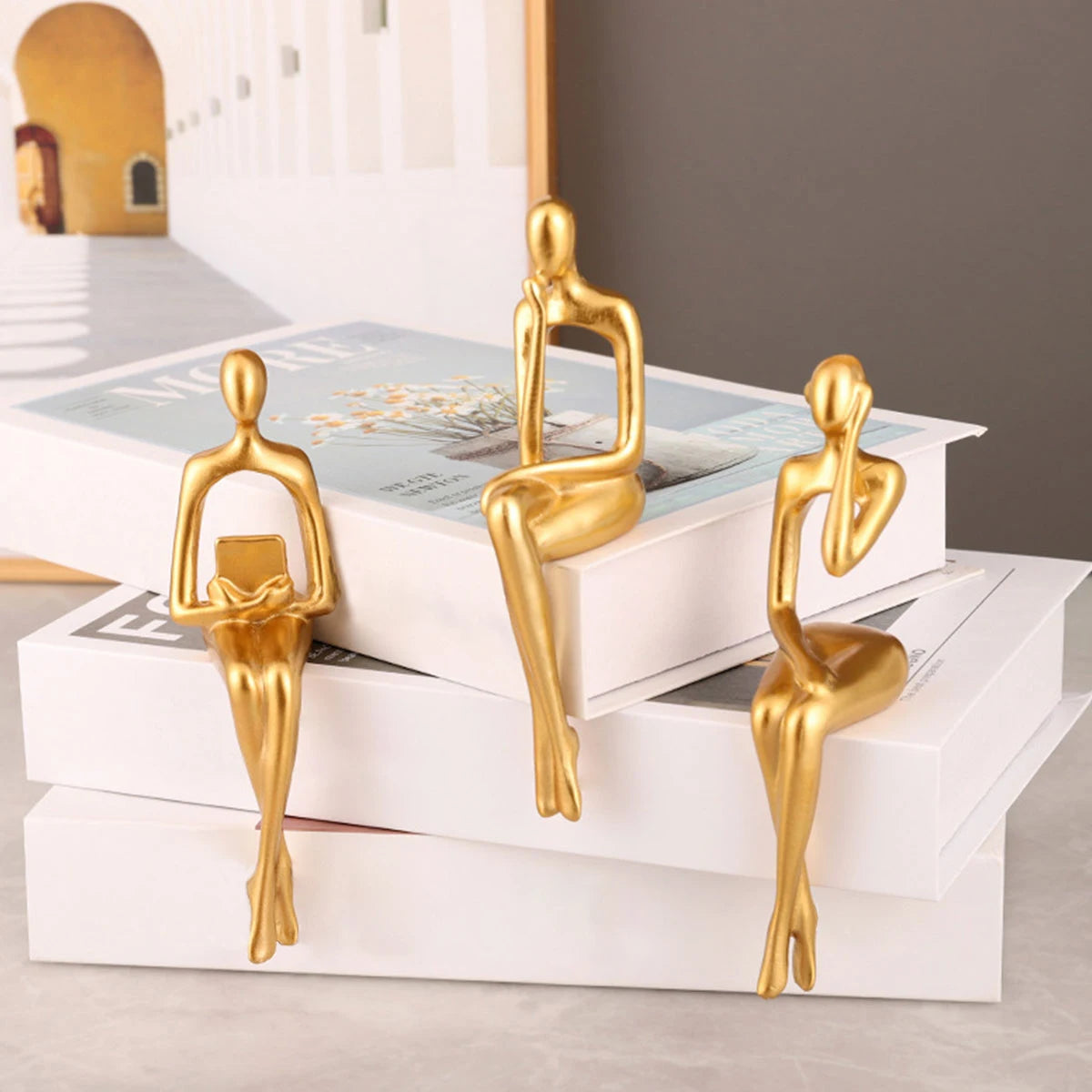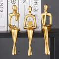 🏆 3pcs Gold Resin Thinker Figurines – Abstract Sitting Posture Sculptures for Home & Office