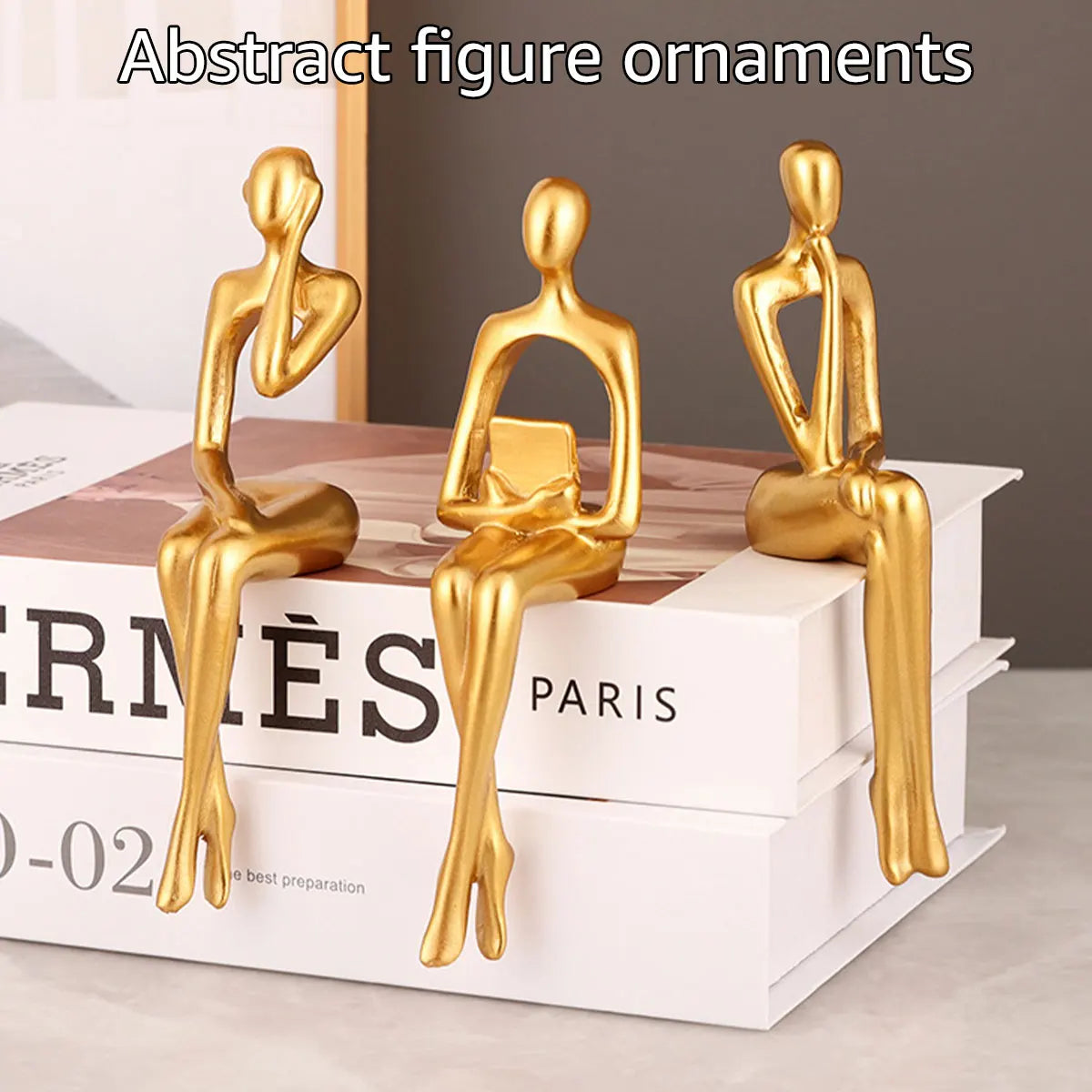 Elevate your space with this set of 3 abstract resin thinker sculptures, featuring elegant gold finish and modern sitting posture design. Perfect for shelves, desktops, coffee tables, or office décor, these statues combine artistic sophistication with contemporary charm.