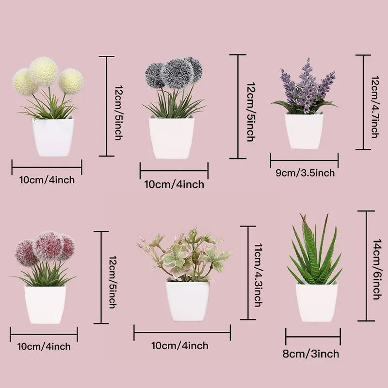 These small potted faux plants are perfect for home décor, office desks, shelves, bathrooms, bedrooms and workspaces — offering a clean, modern look with zero maintenance.