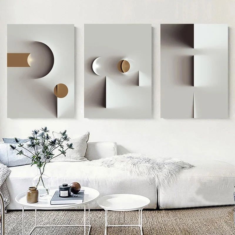 Create a clean, modern and stylish atmosphere with this 3PCS Modern Abstract Geometric Canvas Painting Set with Frame.