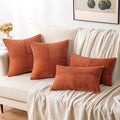 Rust Boho Throw Pillow Cover 18×18 Inch – Textured Corduroy Patchwork Cushion Case for Sofa, Couch & Bed