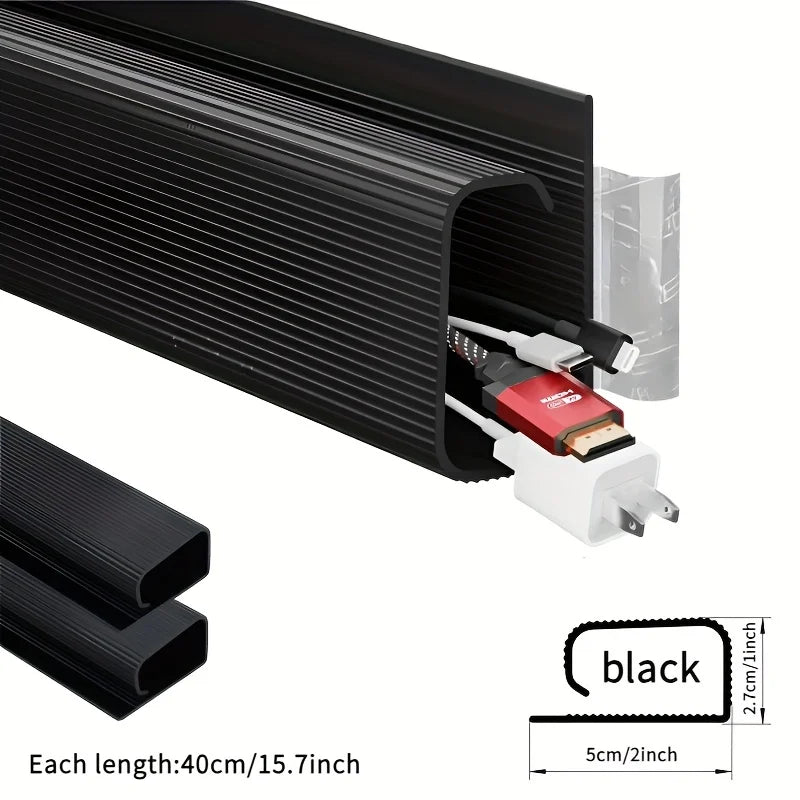 2pcs Sleek Black Under-Desk Cable Tray – Self-Adhesive PVC Cable Organizer for Tidy Workspaces