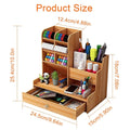Wooden Desk Organizer with Drawer – Large-Capacity DIY Pen Holder for Home, Office & School